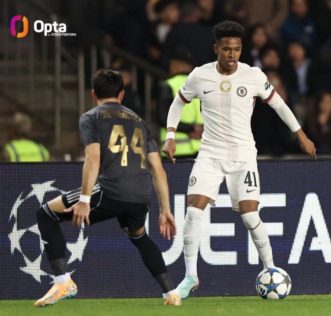 本赛季共有六支英超球队参加欧冠,创下了单赛季参加欧冠的纪录。而这六支英超球队的表现当然也不错。所有球队都在升级区或季后赛区。北京时间11月6日凌晨,切尔西也开启了欧冠第四轮对阵卡拉巴赫的比赛。蓝军客场在卡拉巴赫出人意料地以2-2的比分获胜。卡拉巴赫来自阿塞拜疆。前三场比赛取得两场胜利,他们积六分,与切尔西持平。马雷斯卡本场比赛也进行了多次轮换。替补席上有恩佐、凯塞多、查洛瓦和加纳乔。若昂·佩德罗、埃斯特万、吉滕斯和乔治领衔前锋组合。桑托斯和拉比亚是双中场。后防线由库库雷拉、胡托、阿达拉比奥尤和詹姆斯组成,守门员是桑切斯。比赛才开始六分钟,切尔西球迷就哑口无言了。拉维亚是偶然的y受伤了,坚持不住了,所以被凯塞多换下。这位21岁的年轻英格兰中场球员已经在蓝军效力了第三个赛季。他在495天内受伤8次,缺席了77场比赛。他只为切尔西踢了29场比赛,大部分时间都躺在床上。第11分钟,吉滕斯左路突破倒三角射门。乔治错失了门前的绝佳机会。第16分钟,桑托斯禁区外得球。埃斯特万右路转身推射近角,1:0! 18岁的埃斯特万在欧冠连续进球,成为第一位在欧冠连续进球的18岁南美球员。然而,切尔西并没有高兴多久。第29分钟,赫特在对手前锋杜兰的压力下出现低失误。后者射门命中后,安德拉德再次射门,1-1!第39分钟,矢藤禁区内防守时手球被判。那里裁判毫不犹豫地判罚了点球。扬科维奇主罚点球,1-2!仅仅10分钟,切尔西连丢两球取得领先。下半场回归后,马雷斯卡很快就适应了。恩佐、加纳乔和德拉普加盟,桑托斯、吉滕斯和乔治被替换。这次更换确实产生了效果。第52分钟,加纳乔左路斜传,皮球还没回到脚下就被挡出。阿根廷边锋小角度果断远射,将比分追成2-2!加纳乔还成为第一位在欧洲冠军联赛中为两支英格兰俱乐部进球的22岁以下球员。第54分钟,德拉普禁区内回传球。恩佐停球低射,被科恰尔斯基单手挡住。三分钟后,凯塞多直传,但德拉普的射门被科恰尔斯基挡出。接下来的一段时间,切尔西在场上明显占据优势,但却无法充分利用任何进攻机会。全场比赛,蓝军共出手16次,但只有4次射正。最终两队2-2战平,切尔西爆冷苦苦扳平。